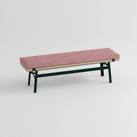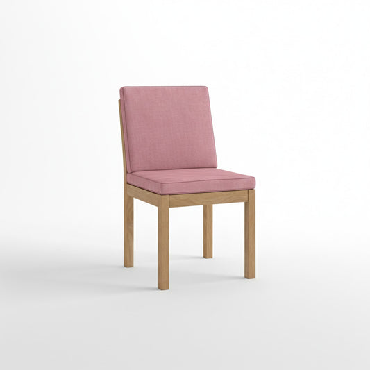 Wir haben für unsere Eichen-Massivholz-Eckbank mehrere Bankauflagen - Indoor mit Strukturstoff - Rosa - gemustert-Bezügen nach Maß anfertigen lassen.