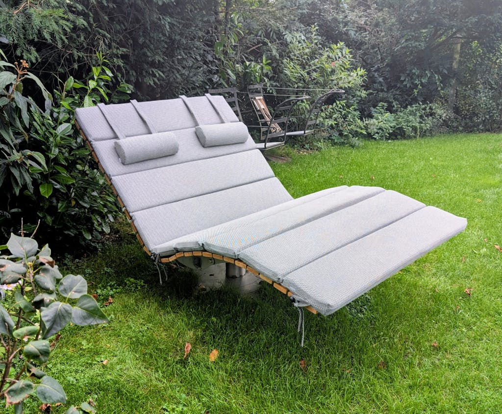 La cosiddetta "Waldsofa" o sdraio ergonomica a onda è il trend del giardino. Ma il legno duro diventa presto scomodo. ZOTRA fornisce la risposta con il cuscino multicamera su misura. A differenza dei materassini rigidi, questo cuscino si adatta in modo flessibile a ogni curva della sdraio grazie alle sue camere segmentate ("costole"). Non si creano vuoti nella zona lombare o delle ginocchia.